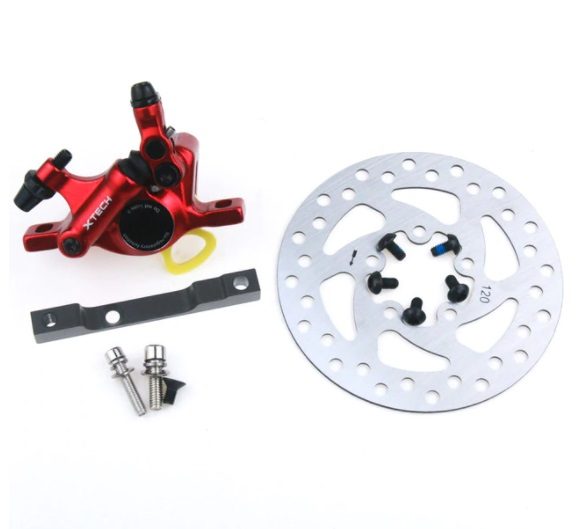 Elektritõukeratta Xiaomi hüdrauliline pidur Xtech (ka hüdrauliline piduri support, õlipidur). Komplektis on punast värvi pidurisupport, 120mm piduriketas koos kinnituskruvidega ning suppordi kinnitamise alus / üleminek. Komplektis on kaasas ka kõik piduri paigalduseks vajalikud kruvid / poldid. Xiaomi hüdrauliline pidur Xtech sobib populaarsele elektritõukerattale Xiaomi Mi M365, Xiaomi Mi M365 Pro, Xiaomi Mi Pro 2, Xiaomi Mi 1S mudelitele ning enamikule Xiaomi kloonidele / koopiatele (Macwheel, Sermangreen, Citiway, E-Wheels E2S V2, Xiaomi Essential ja paljud teised).