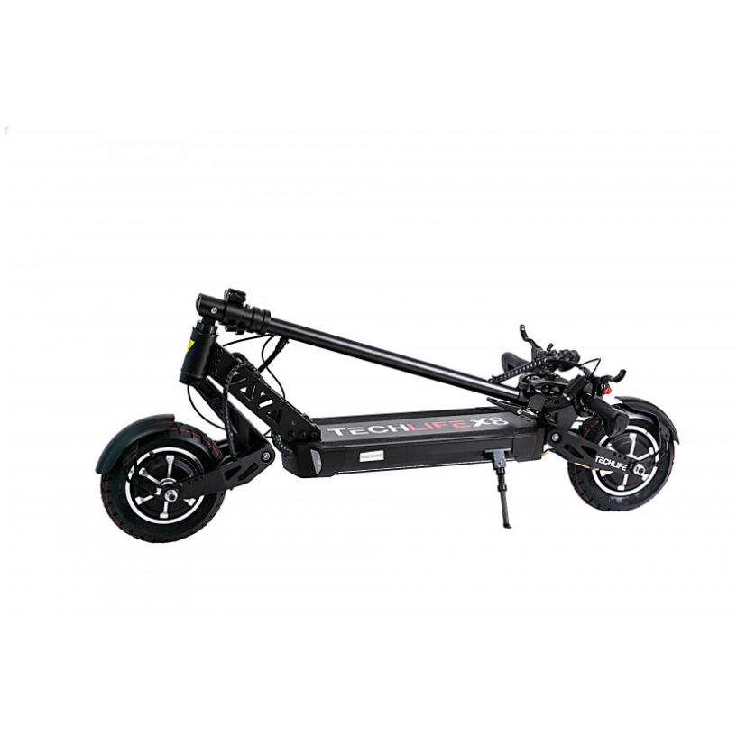 Sähköpotkulaudan kansi on päällystetty liukastumista estävillä nauhoilla (griptape) parhaan mahdollisen turvallisuuden takaamiseksi myös sateisella säällä ajettaessa. Sähköskootterin moottoreiden kokonaisteho on jopa 1000W. Kaksi BLDC DC -sähkömoottoria takaavat kiipeämisen mäissä, joiden kaltevuus on jopa 27 astetta. Sähköpotkulauta saavuttaa valmistajan ilmoittaman 25km/h nopeuden sekunnissa. Techlife X8:n runko on suunniteltu enintään 130kg painaville ajajille.