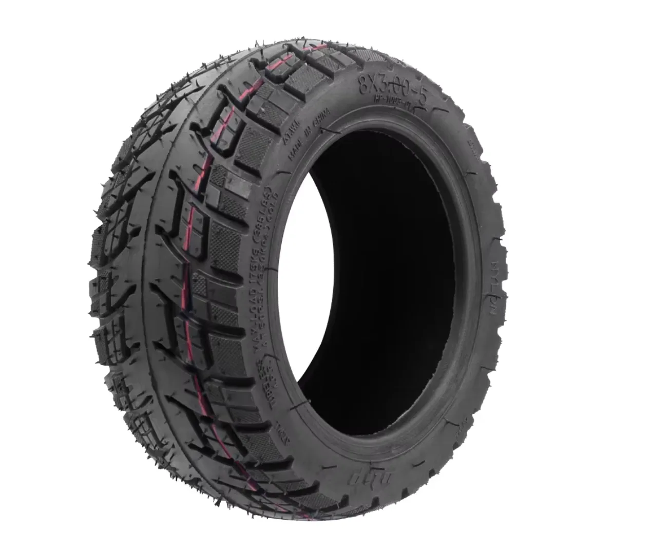 Kaabo Mantis 8 maastorengas 8×3.00-5 tubeless. 8 tuuman renkaassa on maastokuvio ja se soveltuu maasto- ja kaupunkiajoon. Rengasta voidaan käyttää ilman sisäkumia. Sopii Kaabo Mantis 8 -sähköskootteriin sekä muihin sähköskoottereihin, joissa on 8×3.00-5 renkaat.